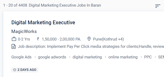 As you can see in this screenshot, around 4,000 digital marketing jobs are currently available in Baran. We have included a screenshot from just one website. If you check on all, there are plenty of jobs available.